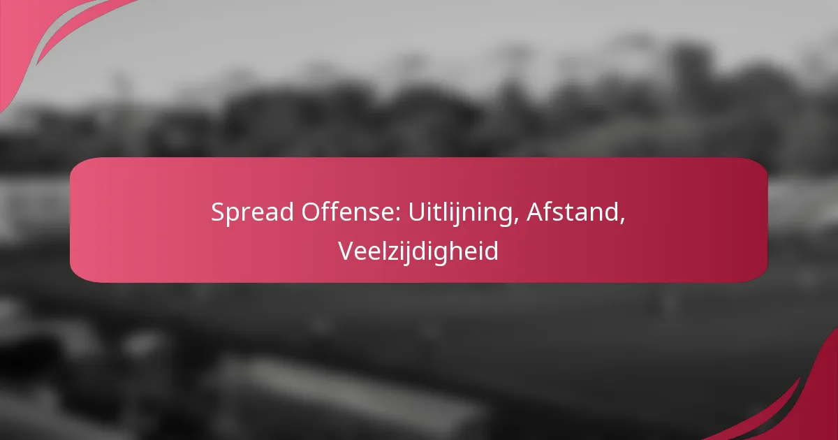 Uitlijning in de spread offense richt zich op de positionering van spelers om ruimte te maximaliseren en mismatches tegen verdedigingen te creëren. Juiste uitlijning maakt veelzijdige playcalling en effectief gebruik van het veld mogelijk, wat cruciaal is voor aanvallend succes.